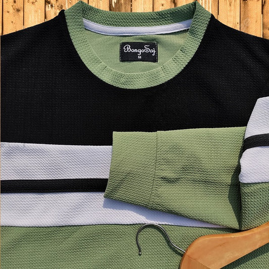 Full Sleeve Collar T-Shirt Forest Green & White 2-Stripes